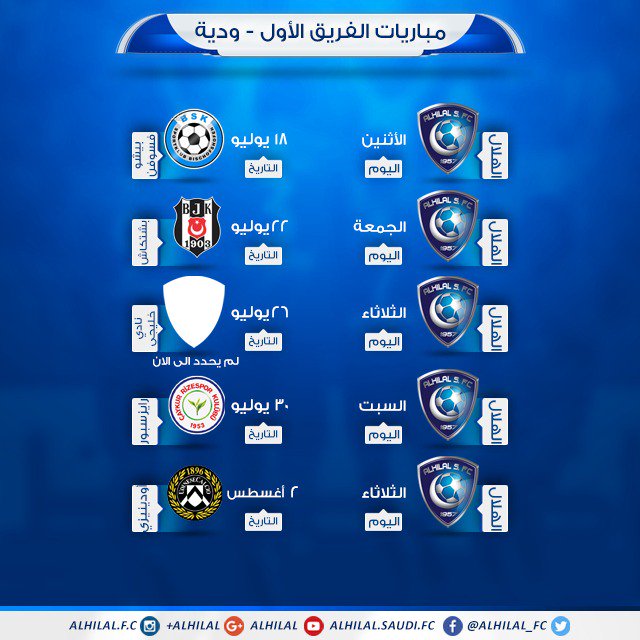 جدول مباريات نادي الهلال الودية بمعسكره الإعدادي الذي سيقام في "النمسا" الحصول على الرابط Facebook X Pinterest بريد إلكتروني التطبيقات الأخرى بواسطة HF - يوليو 09, 2016 جدول مباريات نادي الهلال الودية بمعسكره الإعدادي الذي سيقام في "النمسا" الحصول على الرابط Facebook X Pinterest بريد إلكتروني التطبيقات الأخرى تعليقات